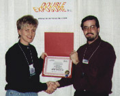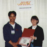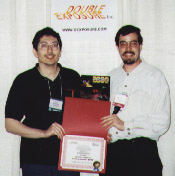 MYTH II: Soulblighter (Bungie Software)Tuncer Deniz also presents a certificate to a grinning Jose Miguel Chavez (left).