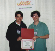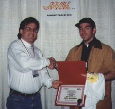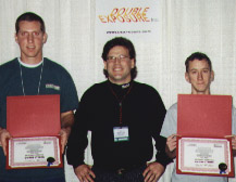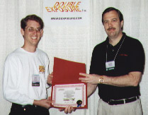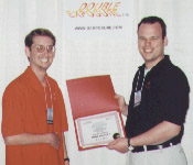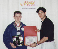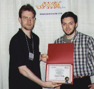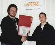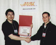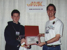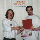 Quake (MacSoft)Chris Hillar (right) receives his award from Nate Birkholz after winning the most watched and most exciting tournament of the entire championship.