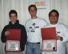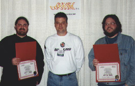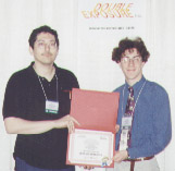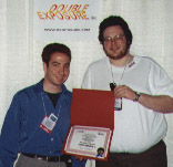 Marathon TEAM (Bungie Software)Fred Torres (left) and Scott Janssen (right) receive their awards from Bungie's Doug Zartman.