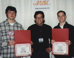 MYTH II: Soulblighter TEAM (Bungie Software)Tuncer Deniz is seen here with the winning team, Peter Ferioli (left) and Kenneth Badertscher (right).